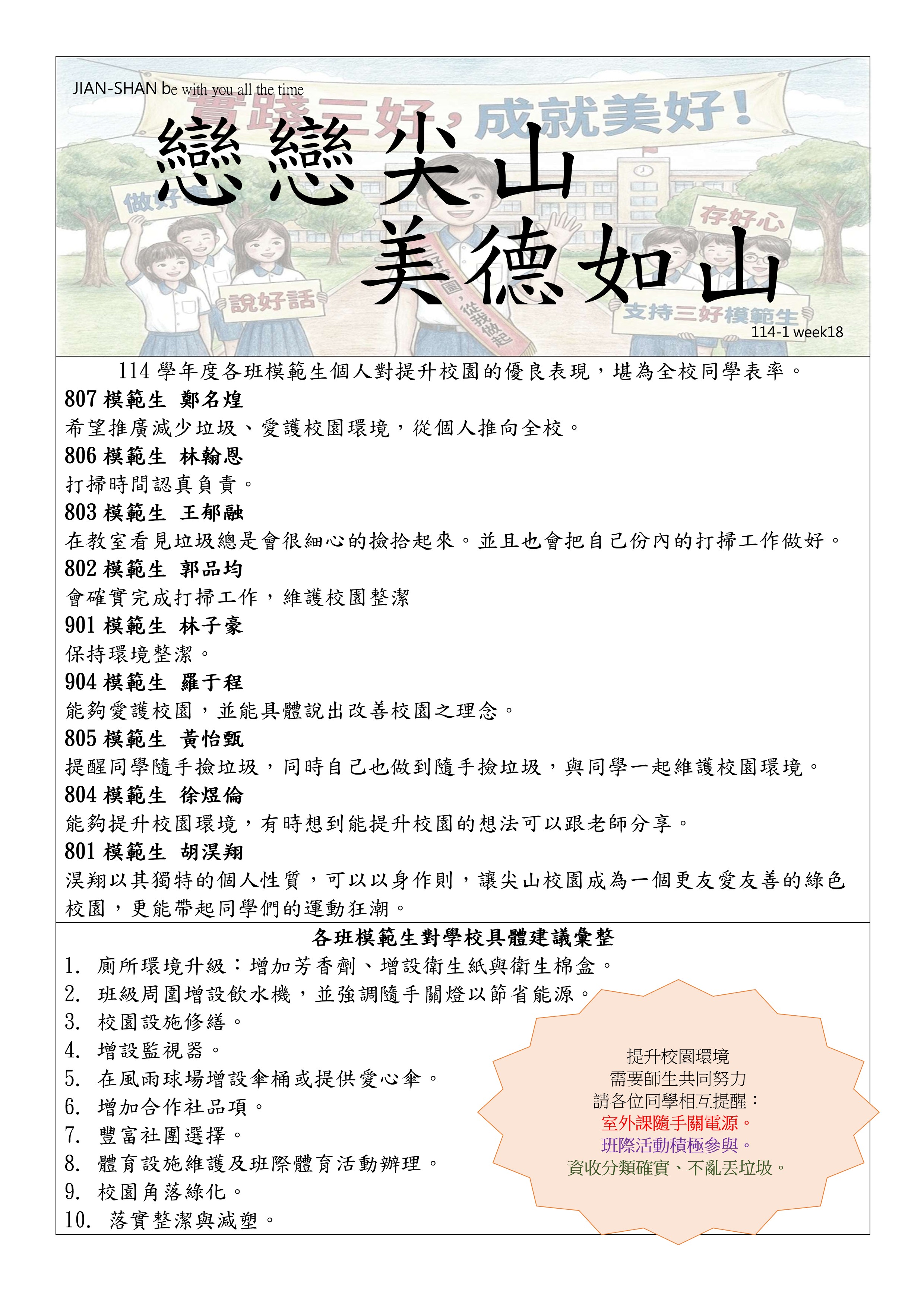 品德週報(114學年度第一學期第十八週)